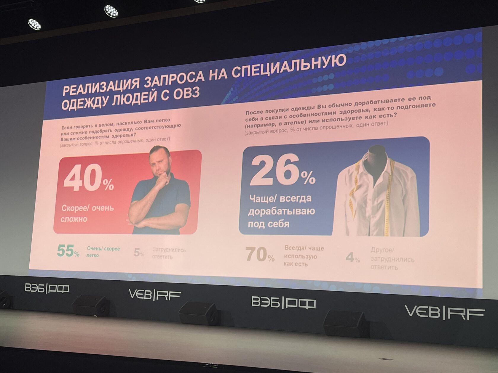 В рамках этой сессии ВЦИОМ презентовал свежее исследование «Одежда с неограниченными возможностями» — и для меня это был одновременно важный и неожиданный опыт. Исследование подняло ключевые вопросы, с которыми я работаю в be easy kid: какие барьеры существуют для покупателей адаптивной одежды, что важно для самих пользователей, какие бренды уже движутся в этом направлении.